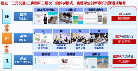 在十五年的教學實踐中,她主導的“理實遞進式”教學資源體系、“一引擎四聯(lián)動”數(shù)智化教學手段和“三元交互·三步四環(huán)三層次”教學模式,構建起數(shù)學教育的立體化生態(tài)。