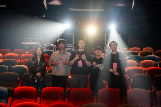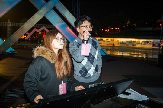 臺前的精彩,離不開幕后的默默付出。燈光師鹿馨月同學說:“燈光不只是照亮舞臺,它是情緒的語言,是故事的延伸。”調音臺前,調音師衛(wèi)夢飛同學正全神貫注應對著陌生場地帶來的多重挑戰(zhàn)!俺醯酱鬀錾降哪吧鷪龅,接耳麥、對頻、調參數(shù)都比校園活動更有挑戰(zhàn),但當演員臺詞清晰傳遞、音樂與劇情完美融合,我才懂調音不只是技術操作,更是用聲音為戲劇‘搭臺’,也對‘聲音服務于藝術’有了更真切的理解。”