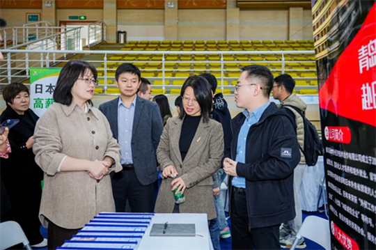 呂處長(zhǎng)首先參與了工商管理學(xué)院復(fù)星旅文“G.O訂單班”簽約儀式,對(duì)校企共育人才模式表示贊賞。在雙選會(huì)現(xiàn)場(chǎng),呂處長(zhǎng)細(xì)致地了解了訂單班學(xué)生的求職進(jìn)展,并與校領(lǐng)導(dǎo)、企業(yè)代表進(jìn)行了卓有成效的交流。