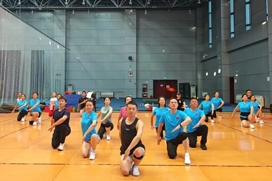 廣播體操項(xiàng)目陜西代表隊(duì)由20人組成,平均年齡44.6歲,隊(duì)員們都具有高級(jí)職稱的教練員、裁判員資質(zhì),常年扎根推廣全民健身運(yùn)動(dòng)的第一線。從6月上旬到7月底,在為期40多天的訓(xùn)練備賽中,隊(duì)員們堅(jiān)持練習(xí)體能,打磨技術(shù)動(dòng)作,狠抓動(dòng)作細(xì)節(jié),一個(gè)抬手角度、一次轉(zhuǎn)身節(jié)奏,都要反復(fù)打磨到全隊(duì)一致。