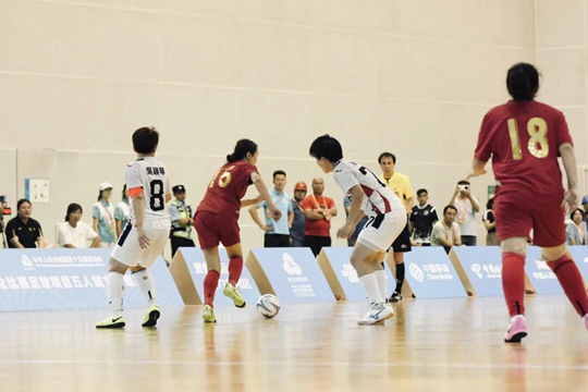 李萌在十五運(yùn)會(huì)群眾比賽足球項(xiàng)目五人制女子組頒獎(jiǎng)現(xiàn)場(chǎng)