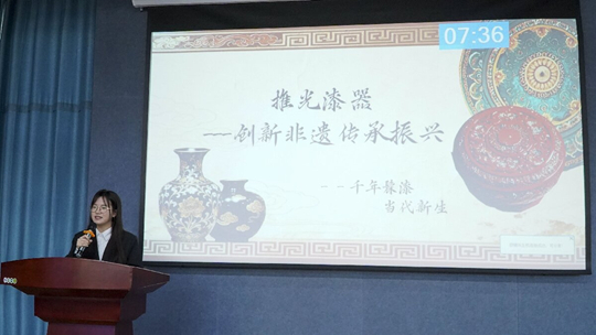 23支團(tuán)隊(duì)通過(guò)路演答辯、實(shí)物展示及情景模擬等多種形式,全面展示了項(xiàng)目的可行性,并將自身專(zhuān)業(yè)知識(shí)與非遺領(lǐng)域深度融合,充分彰顯了項(xiàng)目的創(chuàng)新性!捌び皯騻鞒信c創(chuàng)新”團(tuán)隊(duì)以皮影戲?yàn)楹诵模Y(jié)合AR技術(shù)開(kāi)發(fā)了互動(dòng)式皮影戲體驗(yàn)平臺(tái),用戶可通過(guò)手機(jī)掃描皮影角色,觀看動(dòng)態(tài)劇目并參與劇情創(chuàng)作;“3D非遺拓印工坊”團(tuán)隊(duì)專(zhuān)注于非遺拓印技藝的現(xiàn)代化應(yīng)用,通過(guò)3D掃描技術(shù),團(tuán)隊(duì)將傳統(tǒng)碑刻、器物紋樣轉(zhuǎn)化為數(shù)字模型,并開(kāi)發(fā)了可定制拓印的文創(chuàng)產(chǎn)品;“平遙推光漆器髹飾”團(tuán)隊(duì)聚焦平遙推光漆器的傳承與創(chuàng)新,針對(duì)傳統(tǒng)漆器制作周期長(zhǎng)、成本高的痛點(diǎn),團(tuán)隊(duì)研發(fā)了環(huán)保型速干漆料,并設(shè)計(jì)了可拆卸的模塊化漆器結(jié)構(gòu)。決賽項(xiàng)目精彩紛呈,贏得現(xiàn)場(chǎng)評(píng)委稱(chēng)贊認(rèn)可。