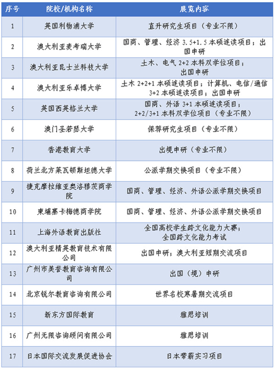 此外,合作院校與新東方國際教育、北京銳爾教育咨詢有限公司等多所機(jī)構(gòu)還舉辦了專場宣講會,為同學(xué)們介紹雅思培訓(xùn)、世界名校寒暑期交流、海外帶薪實習(xí)等項目,為學(xué)生鋪就多元發(fā)展的國際化道路。