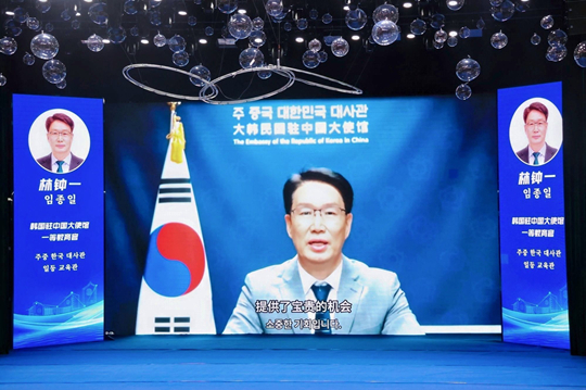 韓國駐中國大使館一等教育官林鐘一在視頻致辭中表示,本次論壇是兩國高等教育與企業(yè)共同成長、共建合作生態(tài)的重要平臺。他呼吁中韓高校在人工智能與數(shù)字化轉(zhuǎn)型浪潮中加強網(wǎng)絡(luò)建設(shè),共同規(guī)劃教育與產(chǎn)業(yè)協(xié)同發(fā)展的可持續(xù)未來。