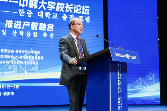 10月31日至11月1日,在教育部指導(dǎo)下,由中國民辦教育協(xié)會主辦、21 世紀韓中交流協(xié)會協(xié)辦、泰山科技學(xué)院承辦的第三屆中韓教育論壇—中韓大學(xué)校長論壇在山東泰安成功舉辦。本屆論壇吸引了來自中韓兩國近百所高校參會,圍繞“加強國際合作,推進產(chǎn)教融合”主題,就高校人才培養(yǎng)創(chuàng)新、校企協(xié)同發(fā)展、區(qū)域教育合作等核心議題展開深度交流,在師生雙向交流、專業(yè)共建、科研合作等方面探討合作機制。論壇由開幕式、主旨報告、中韓高校產(chǎn)教融合創(chuàng)新實踐交流會、合作洽談會等環(huán)節(jié)組成。