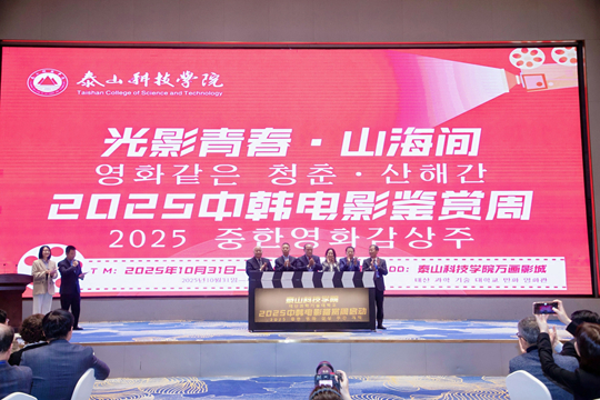 文化交融成為本屆論壇的鮮明底色。首次亮相的“2025泰山·大學(xué)生文旅與非遺文化展”成為互動熱點。嘉賓們體驗泰山煎餅制作、組裝榫卯模型,與非遺傳承人零距離交流,親身感受泰山文化的魅力。同期舉辦的“泰山·中韓大學(xué)生藝術(shù)交流晚會”以“看見、聽見、想見、遇見”為脈絡(luò),將傳統(tǒng)與現(xiàn)代、中韓風(fēng)土與潮流文化巧妙融合,成為論壇期間跨文化交流的一大亮點。此外,“2025中韓電影鑒賞周”也于論壇前夕啟動,將在泰山科技學(xué)院集中展映6部精選中韓優(yōu)秀影片,并舉辦“泰山巨幕影談”等文化活動,讓與會代表與師生沉浸式體驗中韓電影藝術(shù)。