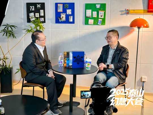 隨后,泰山科技學(xué)院首席科幻作家楊平以專屬訪談形式先后與劉慈欣、王晉康等展開“蓬萊島語”一對一深度對話。訪談圍繞作家創(chuàng)作心路歷程、科幻創(chuàng)作實戰(zhàn)經(jīng)驗、人類未來發(fā)展等多元話題展開。