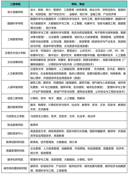 目前共有20000余名在校生,學(xué)校下設(shè)會(huì)計(jì)金融學(xué)院、數(shù)據(jù)科學(xué)學(xué)院、工商管理學(xué)院、文化傳媒學(xué)院、人文教育學(xué)院、艾德藝術(shù)設(shè)計(jì)學(xué)院、信息工程學(xué)院、人居環(huán)境學(xué)院、職業(yè)教育學(xué)院、通識(shí)教育學(xué)院、馬克思主義學(xué)院、國(guó)際語(yǔ)言中心等12個(gè)教學(xué)機(jī)構(gòu)。