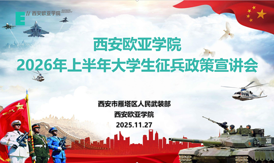 國無防不立,民無兵不安。為深入貫徹落實習近平總書記強軍思想,積極響應黨中央、中央軍委關于征集高素質青年入伍的戰(zhàn)略部署,引導廣大青年學子將愛國之心化為報國之行,11月27日,以“志存高遠礪青春,建功立業(yè)赴軍營”為主題的西安歐亞學院2026年上半年大學生征兵政策宣講會在學校圖書館學術報告廳隆重舉行。此次活動不僅是一場精準的政策解讀會,更是一堂深刻的思想動員課和國防教育課,正式掀開了西安歐亞學院新一年度征兵工作的序幕。