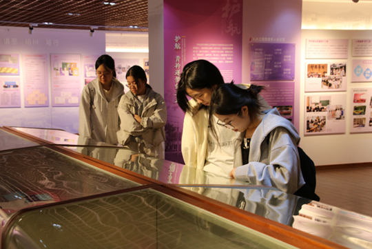 黨建思政育人基地里,同學(xué)們端詳展品、輕聲交流(學(xué)生傳媒中心 賴梅玲 攝)