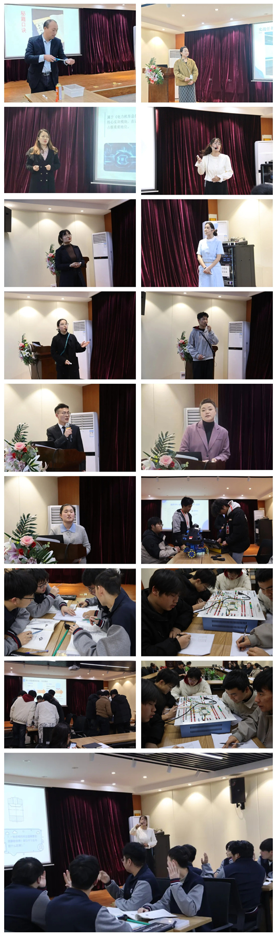經(jīng)過各教學(xué)單位初選,共有11支比賽隊(duì)伍參加本次比賽,參賽教師們?cè)诒荣惛鳝h(huán)節(jié)表現(xiàn)優(yōu)異,課堂重點(diǎn)突出,邏輯嚴(yán)謹(jǐn)、條理清晰,既深度融入思政引領(lǐng)、德技并修核心理念與工匠精神融合,又積極運(yùn)用虛擬仿真設(shè)備、數(shù)字化教學(xué)資源落實(shí)工學(xué)一體化教學(xué)要求,集中展示了教師隊(duì)伍良好的綜合育人素質(zhì)、扎實(shí)的專業(yè)教學(xué)水平及鮮明的教學(xué)創(chuàng)新能力。