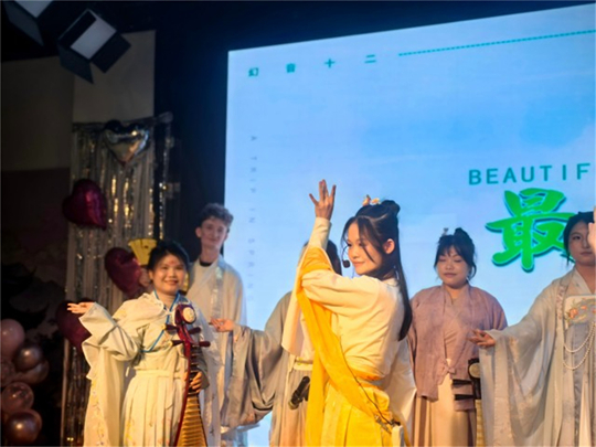 “幾個(gè)月前我還不認(rèn)識(shí)琵琶,現(xiàn)在能登臺(tái)表演,特別開(kāi)心。”來(lái)自越南的留學(xué)生孫陳草怡在后臺(tái)說(shuō),這是她參與學(xué)院“山海古風(fēng)工坊(琵琶)”的成果。學(xué)院邀請(qǐng)專業(yè)老師從樂(lè)器構(gòu)造、演奏技法到文化內(nèi)涵進(jìn)行系統(tǒng)授課,留學(xué)生們不僅掌握了演奏技巧,更在了解《琵琶行》的詩(shī)句中,觸摸到中華文化的精神內(nèi)核。