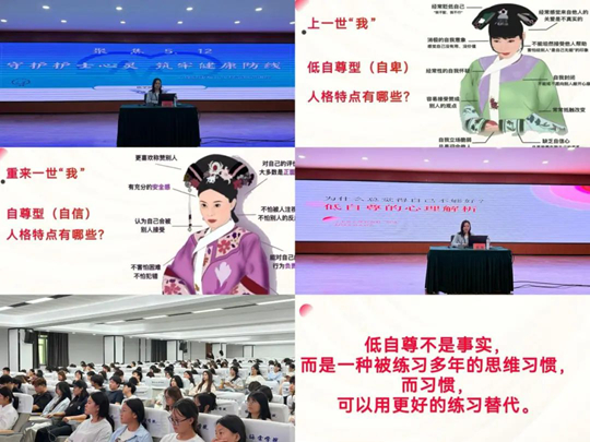 薛冰科長聚焦同學們在日常工作中可能面臨的心理壓力與情緒困擾,以層層遞進的引導方式,系統(tǒng)解析壓力識別、情緒調節(jié)、自我關懷與賦能方法。其間,巧妙的引入《甄嬛傳》中的經典人物與情節(jié)作為鮮活案例,將專業(yè)心理知識融入生動解讀,助力同學們精準捕捉自身情緒信號,掌握生活的平衡之道,在成長中筑牢心靈防護堤。
