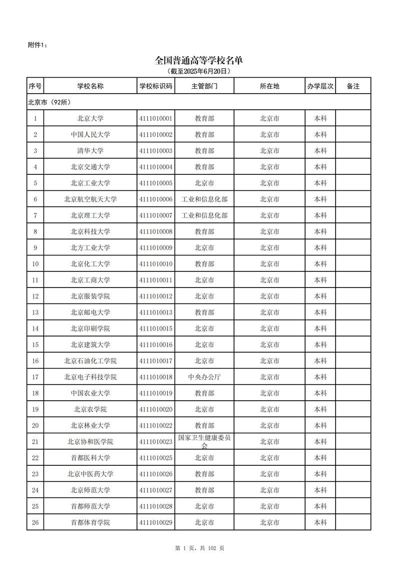 | 全國高等學(xué)校名單(截至2025年6月20日) |