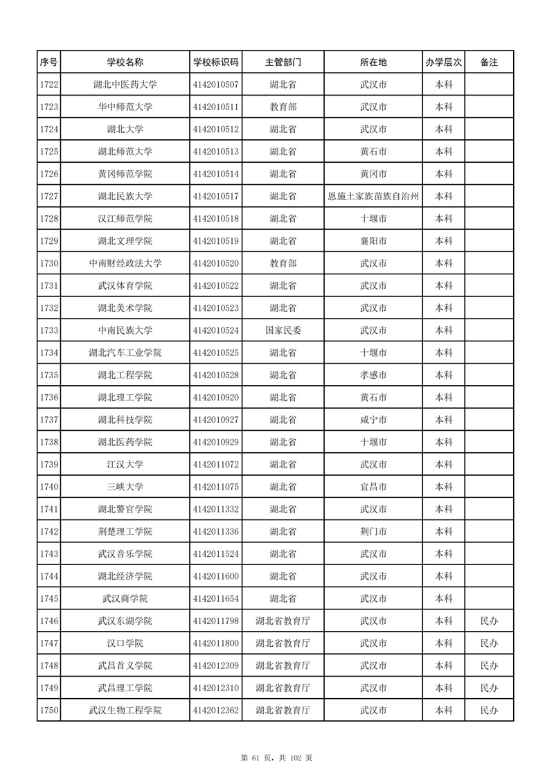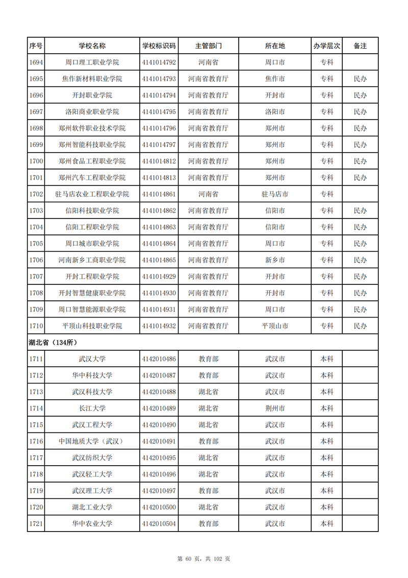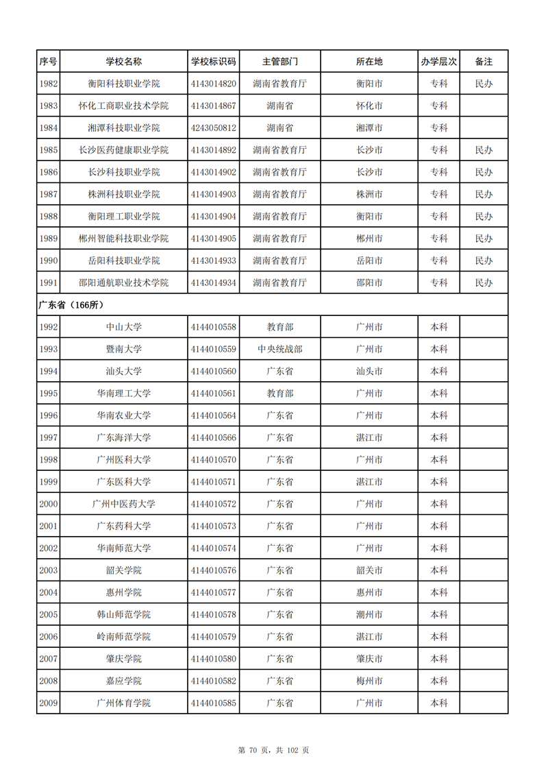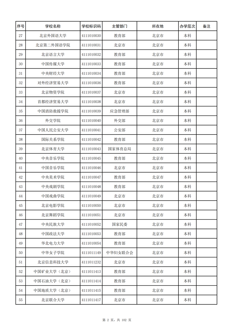 附件:1.全國普通高等學(xué)校名單(點擊查看)