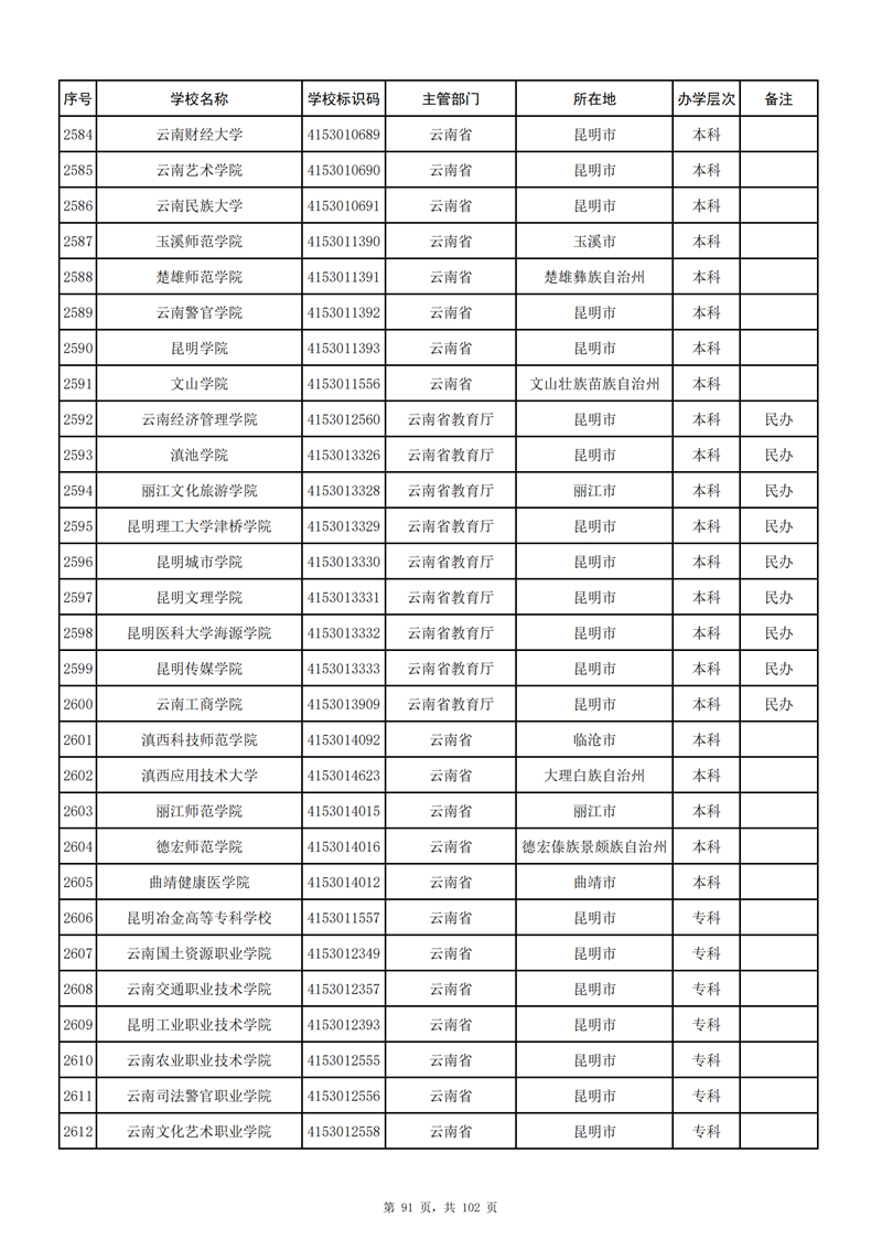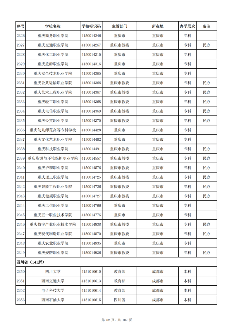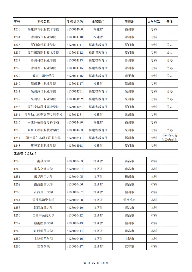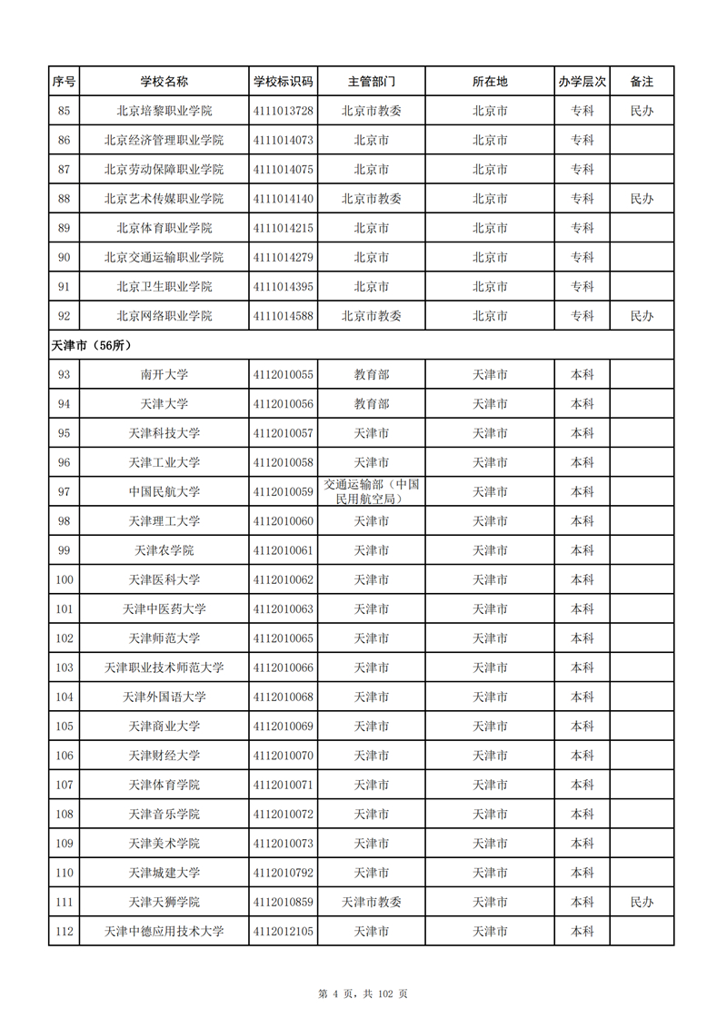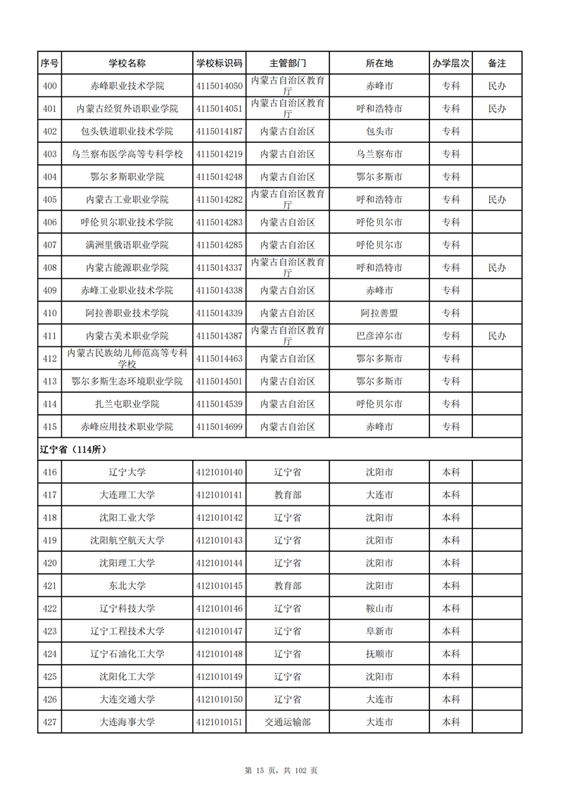 附件:1.全國普通高等學(xué)校名單(點擊查看)
