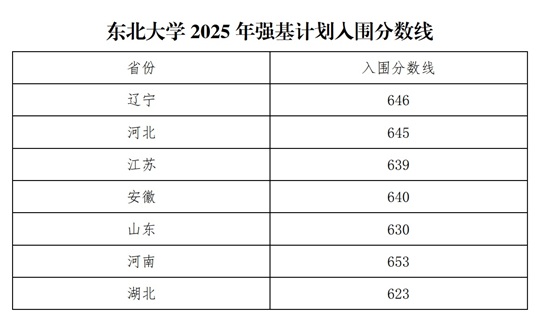 我校根據(jù)各省招辦提供的考生高考成績(不含任何政策加分,下同),按照《東北大學2025年強基計劃招生簡章》要求確定入圍學校考核測試資格,入圍結(jié)果請登錄東北大學強基計劃報名平臺(網(wǎng)址:https://bm.chsi.com.cn/jcxkzs/sch/10145)查詢,強基計劃分省入圍分數(shù)線詳見附件。