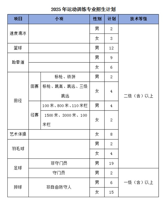 。ǘ┚邆湮倚U猩(xiàng)目之二級(jí)(含)運(yùn)動(dòng)員以上技術(shù)等級(jí)稱號(hào),其中排球、足球守門員須具備一級(jí)(含)以上運(yùn)動(dòng)員技術(shù)等級(jí)稱號(hào),考生運(yùn)動(dòng)員技術(shù)等級(jí)以“國家體育總局運(yùn)動(dòng)員技術(shù)等級(jí)系統(tǒng)”公示的數(shù)據(jù)信息為準(zhǔn)。