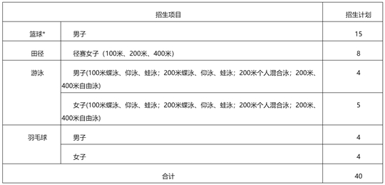 (二)體育專項成績錄取控制線:籃球項目不低于68分,游泳項目不低于60分,田徑、羽毛球項目不低于40分。游泳、羽毛球項目分男女錄取。
