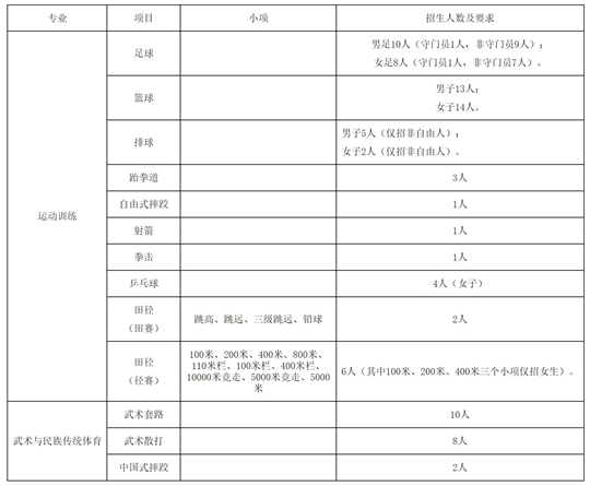 1.運(yùn)動訓(xùn)練、武術(shù)與民族傳統(tǒng)體育專業(yè)招生實(shí)行文化考試和體育專項(xiàng)考試相結(jié)合的辦法。