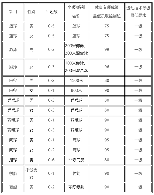 上海交通大學(xué)2025年運(yùn)動訓(xùn)練專業(yè)招生計劃不超過41人,各項目招生計劃如下: