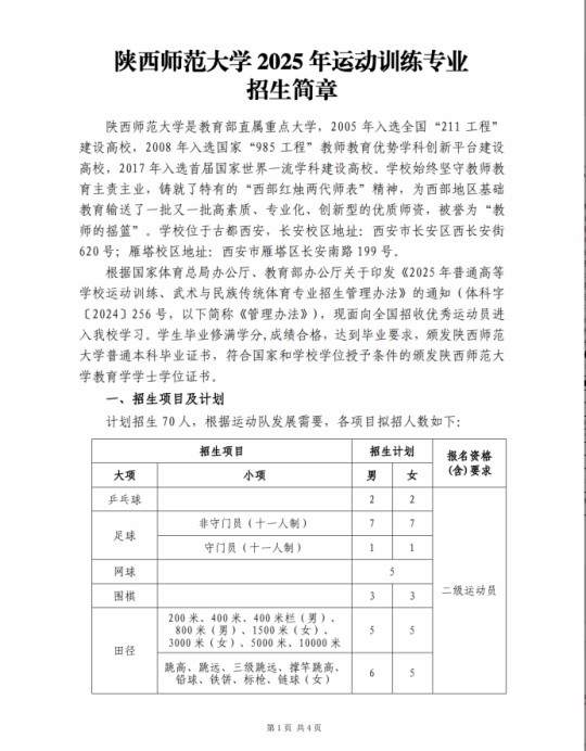 陜西師范大學(xué)2025年運(yùn)動(dòng)訓(xùn)練專業(yè)招生簡(jiǎn)章