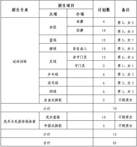 。ㄒ唬┻\(yùn)動訓(xùn)練、武術(shù)與民族傳統(tǒng)體育專業(yè)實(shí)行單獨(dú)招生,經(jīng)國家體育總局審批備案后,提前錄取。