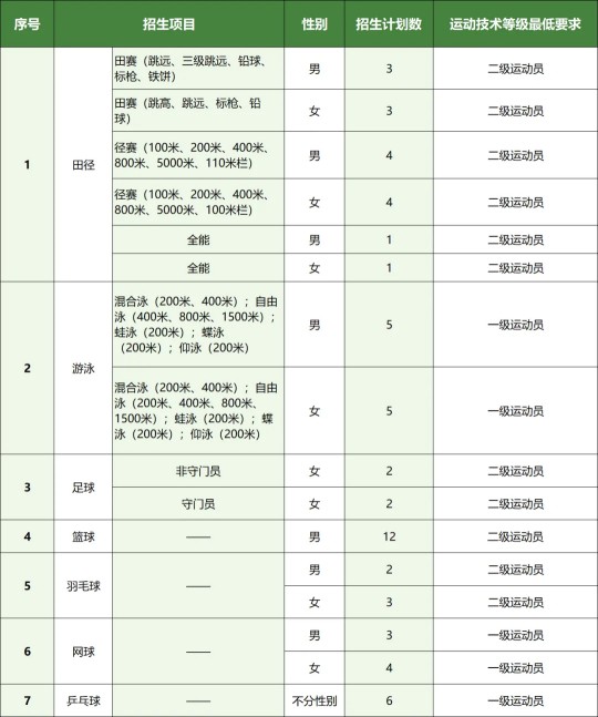 6.若教育部、國家體育總局及生源所在地省級招生考試管理部門對運(yùn)動訓(xùn)練專業(yè)招生有新的規(guī)定,則按新的規(guī)定執(zhí)行。
