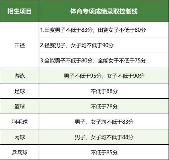 注:以上各項目體育專項成績錄取控制線均包含所述分?jǐn)?shù)。