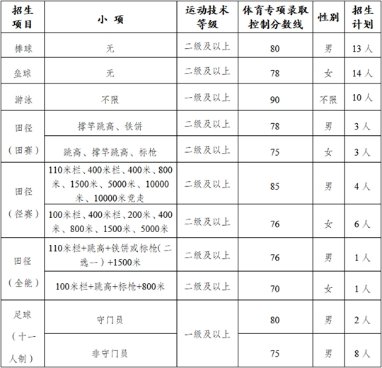 我校依據(jù)國家體育總局、教育部相關(guān)文件規(guī)定及考生實際情況確定文化成績與體育專項成績最低控制分?jǐn)?shù)線。