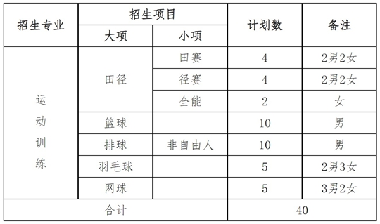 。ㄒ唬┻\(yùn)動(dòng)訓(xùn)練專(zhuān)業(yè)實(shí)行單獨(dú)招生,經(jīng)國(guó)家體育總局審批備案后,提前錄取。