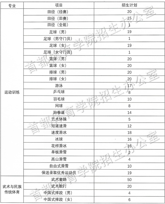 首都體育學院2025年運動訓練、武術與民族傳統(tǒng)體育專業(yè)分項目招生計劃