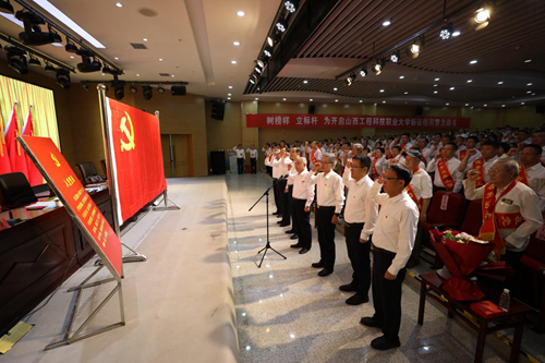 “我志愿加入中國(guó)共產(chǎn)黨,擁護(hù)黨的綱領(lǐng),遵守黨的章程……”面向黨旗,張主社帶領(lǐng)新黨員代表入黨宣誓,帶領(lǐng)全體與會(huì)黨員重溫入黨誓詞,重溫對(duì)黨和人民作出的莊嚴(yán)承諾,現(xiàn)場(chǎng)氣氛莊嚴(yán)而熱烈。錚錚誓言,鏗鏘恢宏,強(qiáng)烈震撼著在場(chǎng)的每一位黨員,更體現(xiàn)了工科大人對(duì)中國(guó)共產(chǎn)黨的無限忠誠(chéng)。