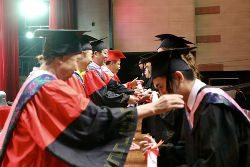最后,畢業(yè)生代表與校領(lǐng)導(dǎo)、學(xué)位評定委員會委員合影留念。