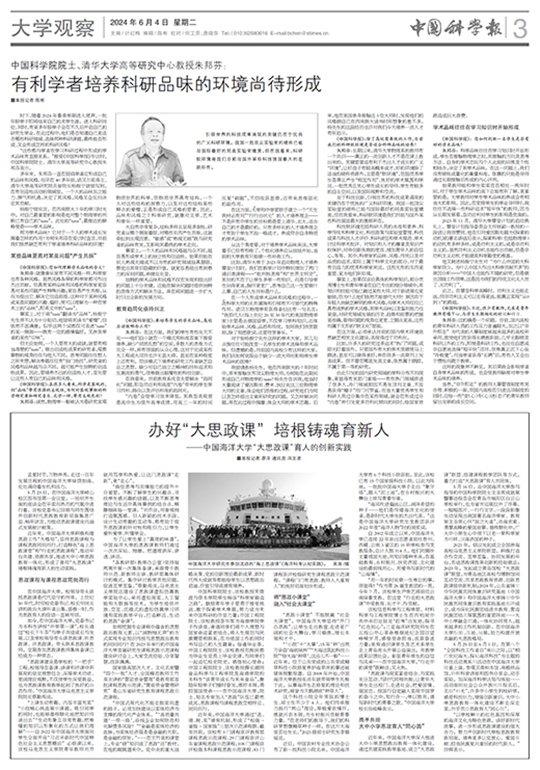 2024年6月4日出版的《中國科學(xué)報(bào)》“大學(xué)觀察”版