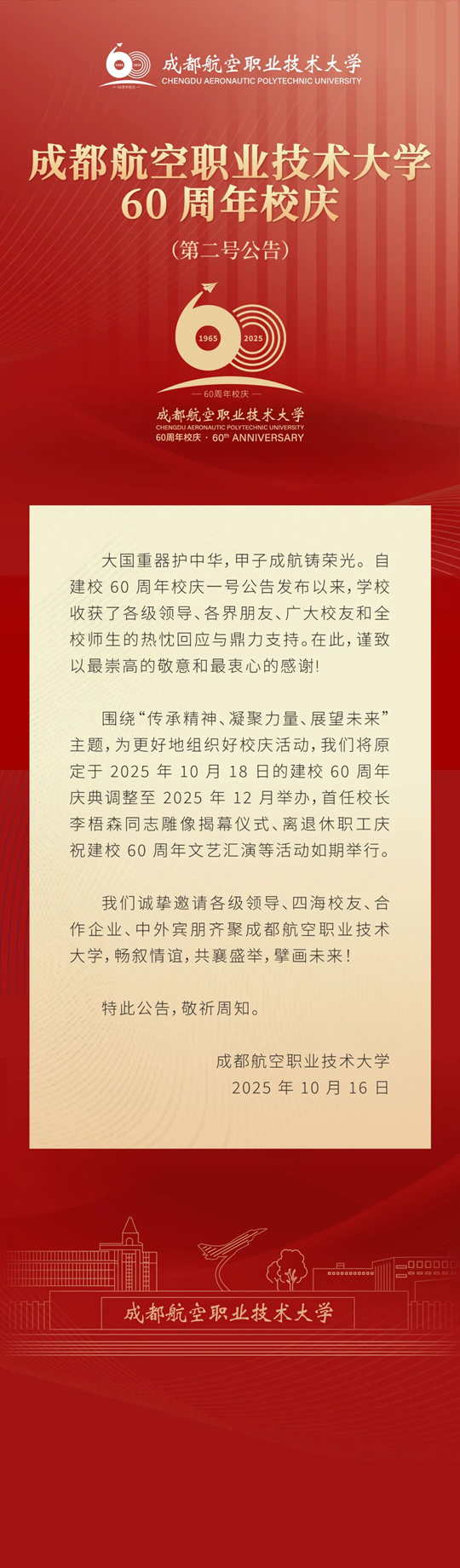 成都航空職業(yè)技術大學60周年校慶(第二號公告)
