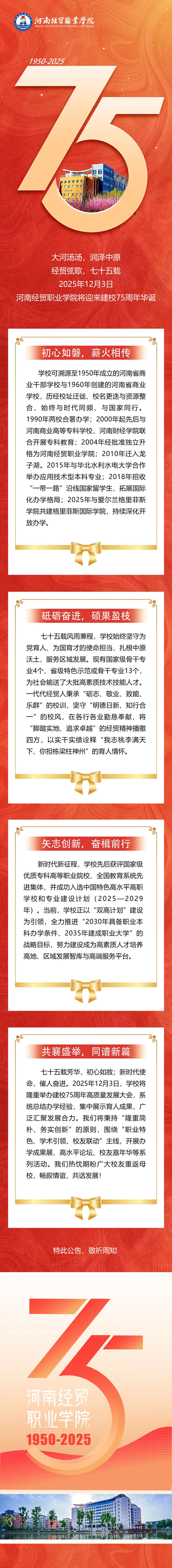 河南經(jīng)貿(mào)職業(yè)學(xué)院建校75周年發(fā)展大會(huì)公告