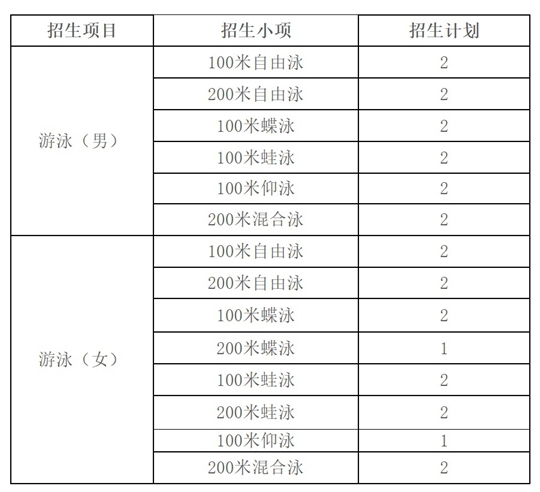 招生項目:游泳。