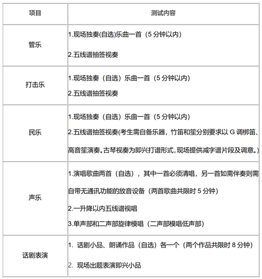 文化課測試:考試科目為語文、數(shù)學(xué)、英語。具體考試安排及要求詳見文化課測試準(zhǔn)考證(在報(bào)名系統(tǒng)下載打。