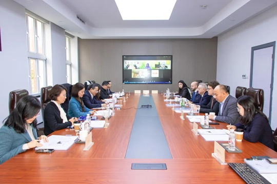 12月6日下午,上海理工大學(xué)中英國(guó)際學(xué)院2024年聯(lián)合管理委員會(huì)第二次會(huì)議在復(fù)興路校區(qū)行政樓203會(huì)議室舉行。上海理工大學(xué)校長(zhǎng)、中英國(guó)際學(xué)院聯(lián)合管理委員會(huì)主任朱新遠(yuǎn),副校長(zhǎng)、中英國(guó)際學(xué)院院長(zhǎng)蔡永蓮等中方管委會(huì)成員,哈德斯菲爾德大學(xué)校長(zhǎng)兼首席執(zhí)行官羅伯特·安東尼·克萊恩(Robert Anthony Cryan),斯圖爾特·史密斯(Stuart Smith)等英方管委會(huì)成員出席會(huì)議。中英國(guó)際學(xué)院執(zhí)行院長(zhǎng)魯伯特·沃德(Rupert Ward)、學(xué)院班子成員列席會(huì)議。會(huì)議由校長(zhǎng)朱新遠(yuǎn)主持。