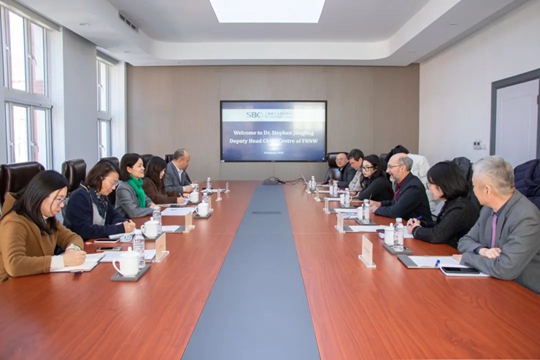 蔡永蓮代表學(xué)校對斯蒂芬•永凌的來訪表示歡迎,簡要介紹了學(xué);厩闆r和中英國際學(xué)院“一對多”合作辦學(xué)特色和辦學(xué)成效。她表示,作為一所具有深厚文化底蘊和鮮明理工科特色的高等學(xué)府,學(xué)校通過開展多層次多渠道的合作交流,不斷探索國際交流的途徑與模式,創(chuàng)新開放辦學(xué)體制機制,形成了多元開放的國際化辦學(xué)發(fā)展路徑。中英國際學(xué)院自2006年建院以來,與英國合作大學(xué)在高等教育領(lǐng)域合作交流頻繁,取得了豐碩成果。期待雙方以此為契機,充分發(fā)揮各自優(yōu)勢,聚焦人工智能科技與文化的傳播,在高層次項目、人才培養(yǎng)、師生訪學(xué)、科學(xué)研究、資源共享等領(lǐng)域開展更為深入和廣泛的合作交流,與學(xué)校和學(xué)院在更多領(lǐng)域結(jié)出碩果,進一步推動雙方院校國際化辦學(xué)高質(zhì)量發(fā)展。