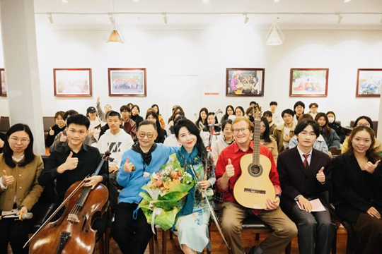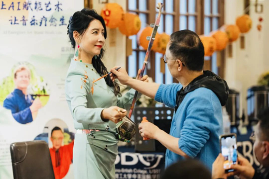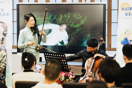 3月14日下午,上海理工大學(xué)中英國(guó)際學(xué)院迎來(lái)了一場(chǎng)藝術(shù)與科技交融的視聽(tīng)盛宴,此次講座邀請(qǐng)到了中英國(guó)際學(xué)院榮譽(yù)教授、海派民樂(lè)跨界藝術(shù)領(lǐng)軍者、國(guó)家一級(jí)演員、二胡藝術(shù)家馬曉輝教授攜手她的嘉賓朋友們,以《讓AI賦能藝術(shù),讓音樂(lè)療愈生命》為主題,帶領(lǐng)師生探索藝術(shù)與人工智能的跨界可能,正式啟動(dòng)了2025年上海宋慶齡基金會(huì)馬曉輝文化藝術(shù)專項(xiàng)基金“校園公益行”活動(dòng)。馬曉輝教授以多重身份深刻詮釋了藝術(shù)創(chuàng)新的豐富內(nèi)涵,同時(shí)成為“藝術(shù)校園、文化校園、智慧校園”的典范,向世界生動(dòng)講述中國(guó)故事,成為一張閃耀的文化名片。中英國(guó)際學(xué)院黨委副書記、副院長(zhǎng)蔡卉,以及師生代表們共同參加本次活動(dòng),全場(chǎng)座無(wú)虛席。