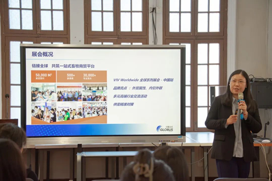 萬耀企龍人力資源總監(jiān)張若旻首先以公司發(fā)展歷程為切入點,詳細介紹了萬耀企龍的四類核心展會活動,如亞寵展、米蘭國際家具展以及VIV國際畜牧展等。她還介紹了公司全球化戰(zhàn)略及人才培養(yǎng)體系,重點推介了面向商科學生的市場策劃、項目運營等崗位的招聘計劃以及福利待遇。她表示,公司尤為重視員工的創(chuàng)新能力和實踐精神,鼓勵同學們在實習中積累經(jīng)驗、展現(xiàn)潛力。