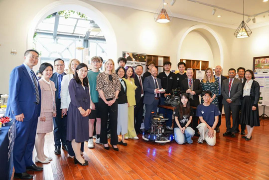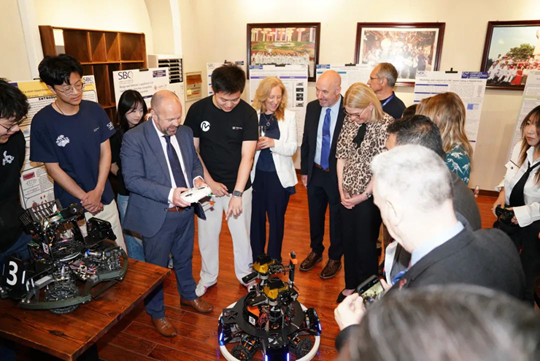 在互動交流環(huán)節(jié),中英國際學院工程與計算學院的師生們展示了精心挑選的優(yōu)秀工科專業(yè)畢業(yè)設計海報,這些海報主題新穎、創(chuàng)意十足。學院兩個工科專業(yè)的學生們向倪克·斯莫一行詳細介紹了畢業(yè)設計情況和學習成果。RoboVigor機器人學生賽隊演示了賽隊自主組裝、研發(fā)的機器人,并介紹了賽隊成長歷程和所獲榮譽。倪克·斯莫一行對中英國際學院充分利用國際化教育資源優(yōu)勢,培養(yǎng)出一批掌握扎實工科專業(yè)知識且具備國際視野、創(chuàng)新意識、實踐能力和跨文化溝通能力的復合型工程人才給予了高度肯定。