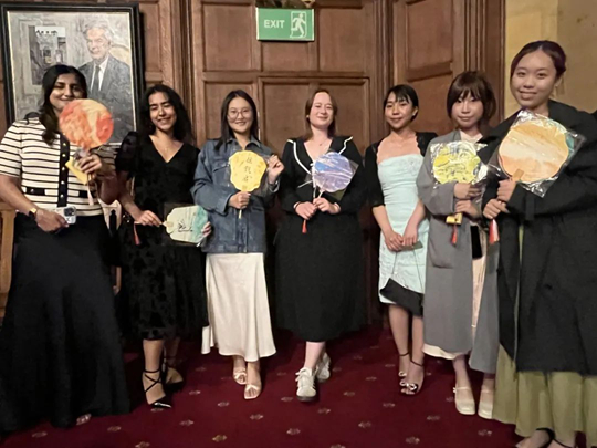 中英學(xué)子攜帶傳統(tǒng)漆扇參加西式高桌晚宴