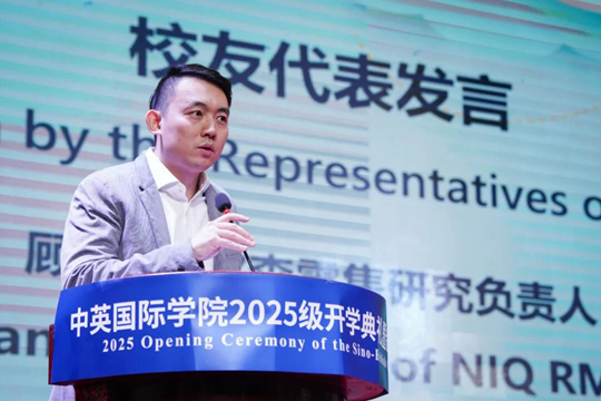 接下來(lái),2025級(jí)新生代表高鉦淇分享了初入學(xué)院的喜悅與憧憬,希望能與所有新生同學(xué)們一起勇于探索、敢于創(chuàng)新,在國(guó)際化校園里拼搏出屬于自己的精彩。在校生代表Luka Kokhanov也分享了自己在中英國(guó)際學(xué)院求學(xué)的感受,作為一名國(guó)際留學(xué)生,期待能與新生同學(xué)們組織和參加豐富多彩的跨文化活動(dòng),共同感受中國(guó)優(yōu)秀傳統(tǒng)文化的魅力。2008級(jí)校友代表、尼爾森零售研究負(fù)責(zé)人顧問(wèn)結(jié)合自身成長(zhǎng)與職場(chǎng)經(jīng)歷,鼓勵(lì)同學(xué)們要專注學(xué)業(yè)的同時(shí),也要勇敢的走出去看世界,感受不同地域的文化風(fēng)貌,在開(kāi)闊國(guó)際視野的同時(shí),不斷提升和超越自我。