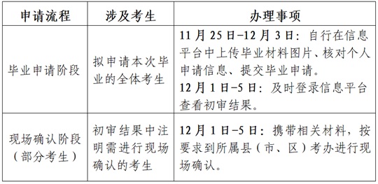 如申請(qǐng)畢業(yè)時(shí)的身份證信息(姓名、身份證號(hào)等)與信息平臺(tái)中的個(gè)人信息不一致,考生需持有效期內(nèi)的身份證信息變更證明、本人二代身份證等材料到所屬縣(市、區(qū))考辦核驗(yàn)信息后,方可申請(qǐng)畢業(yè)。