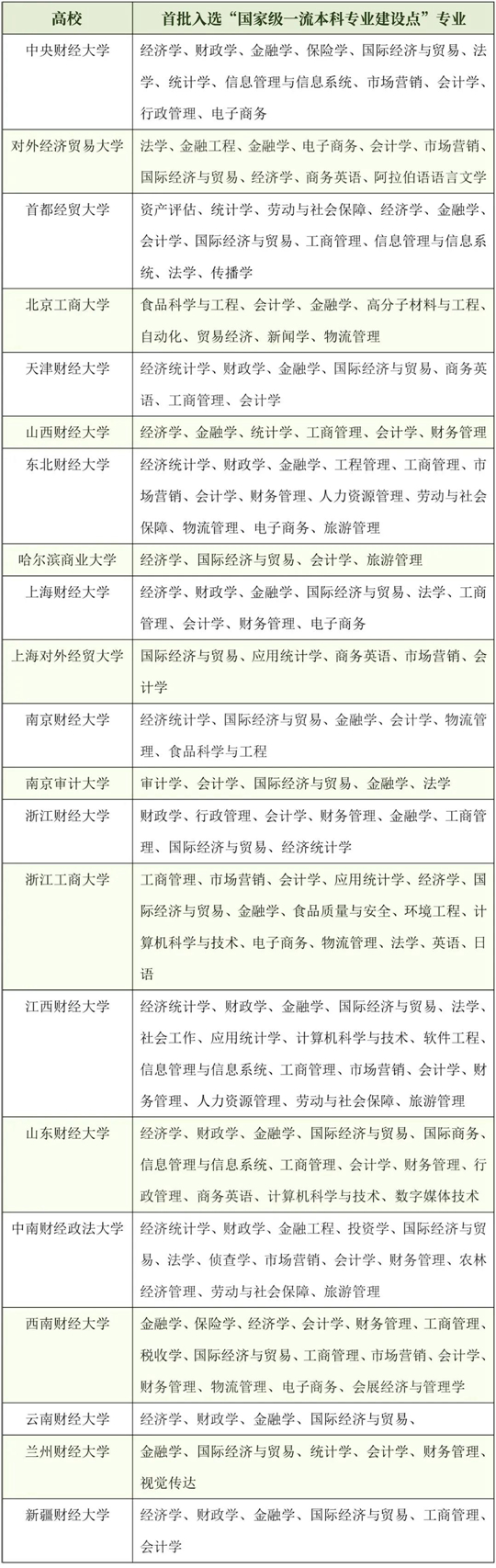 “財(cái)經(jīng)特色”高校大多為以經(jīng)濟(jì)學(xué)門類為主干或核心的行業(yè)特色類高校,一般學(xué)校名稱都包含“財(cái)經(jīng)”“經(jīng)濟(jì)”“貿(mào)易”等關(guān)鍵詞,考生和家長(zhǎng)較為熟悉的有中央財(cái)經(jīng)大學(xué)、對(duì)外經(jīng)濟(jì)貿(mào)易大學(xué)、上海財(cái)經(jīng)大學(xué)、中南財(cái)經(jīng)政法大學(xué)、西南財(cái)經(jīng)大學(xué)“財(cái)經(jīng)五朵金花”和一些校名關(guān)鍵詞含有“財(cái)經(jīng)”“經(jīng)濟(jì)”“貿(mào)易”的高校,如東北財(cái)經(jīng)大學(xué)、江西財(cái)經(jīng)大學(xué)等。