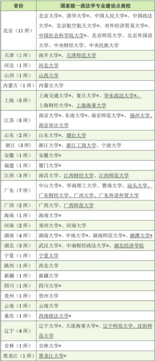 注:帶“*”號的院校擁有一級法學博士點;劃線高校為“非雙一流”大學。